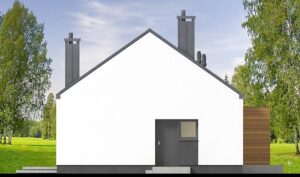 Przemyślany układ pomieszczeń zapewnia maksymalny komfort codziennego użytkowania – przestronny salon z jadalnią i kominkiem tworzy serce domu, sprzyjające wspólnemu spędzaniu czasu. Kuchnia oferuję dużą powierzchnię blatu roboczego. Dwie wygodne sypialnie gwarantują prywatność i spokój. Przy nich znajduje się przestronna łazienka z wanną oraz prysznicem. Kotłownia posiada dodatkowe drzwi zewnętrze zwiększając komfort użytkowania. Zaprojektowano w niej ogrzewanie na paliwo stałe, oraz instalację gazową co ułatwi na etapie adaptacji zmianę źródła ogrzewania na gazowe. Aby można było wykorzystać poddasze, w korytarzu zaprojektowano otwór w stropie na schody spuszczane.