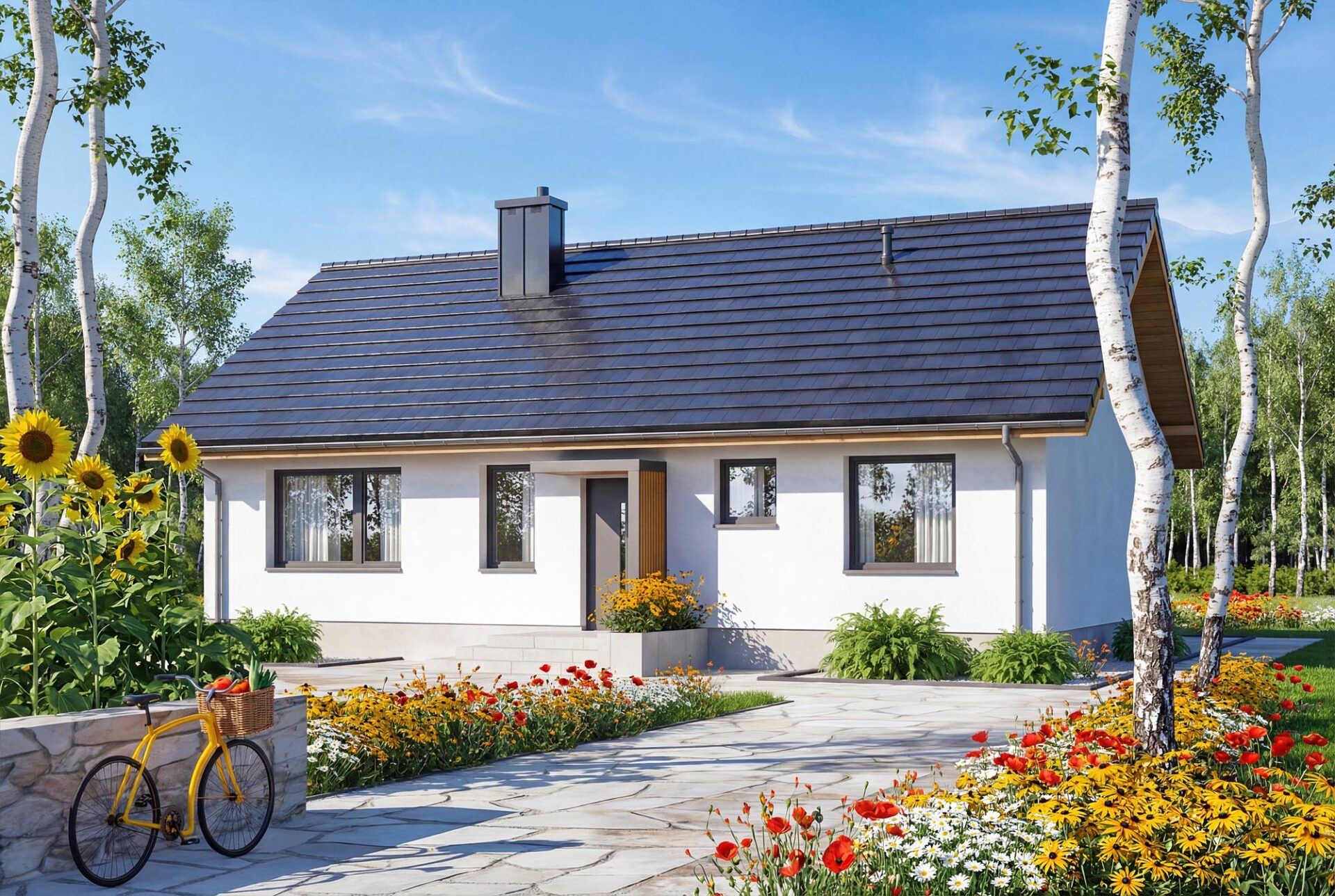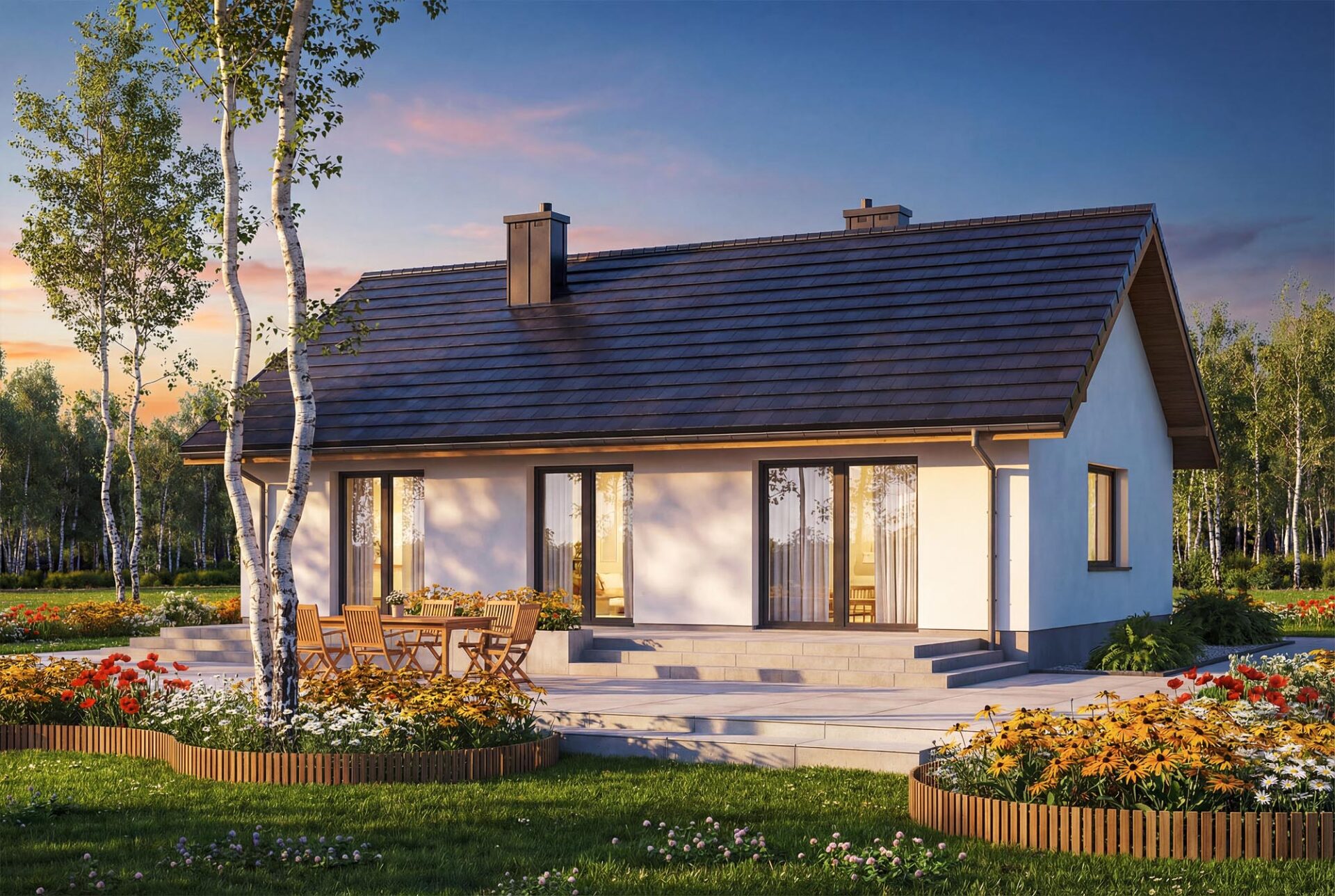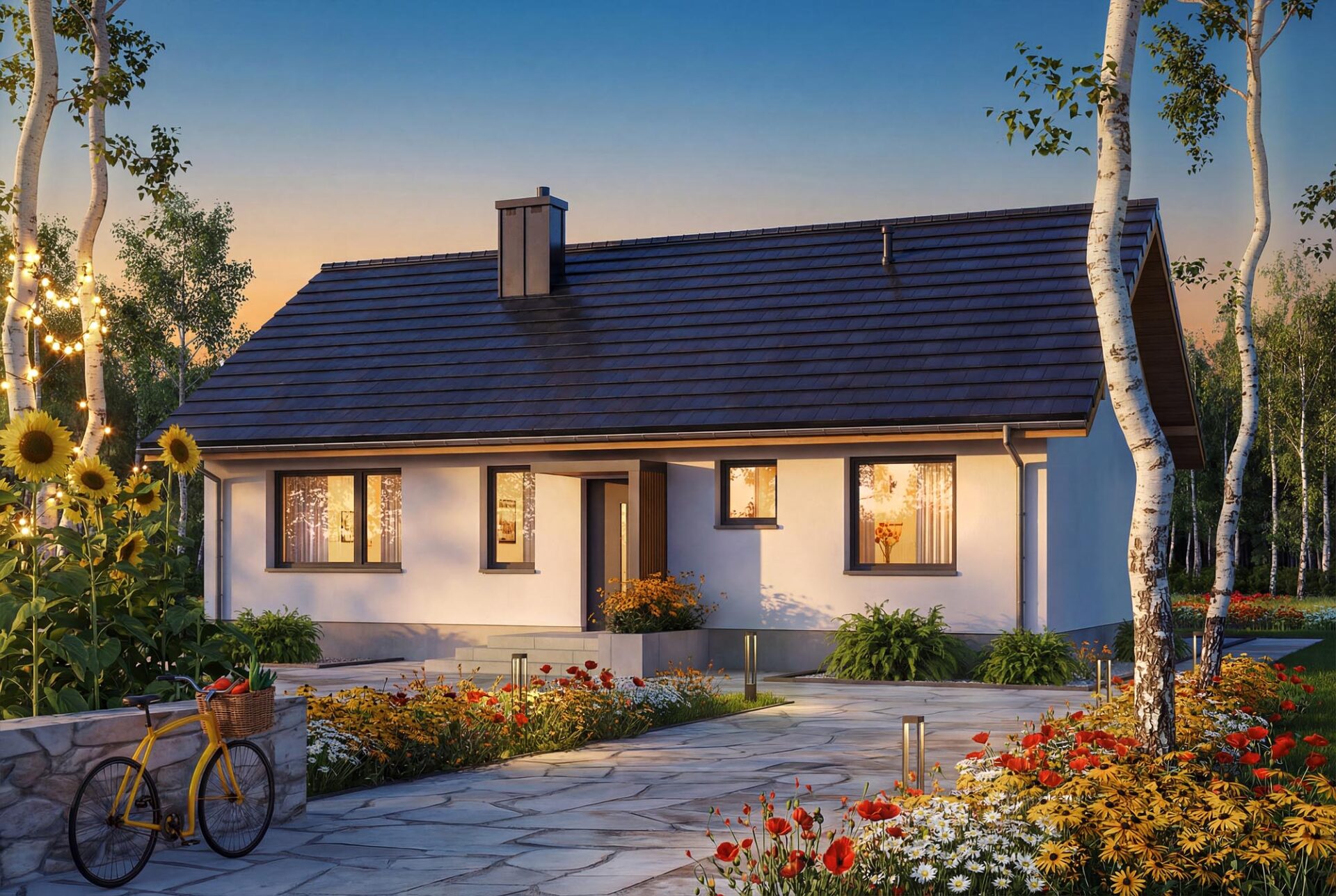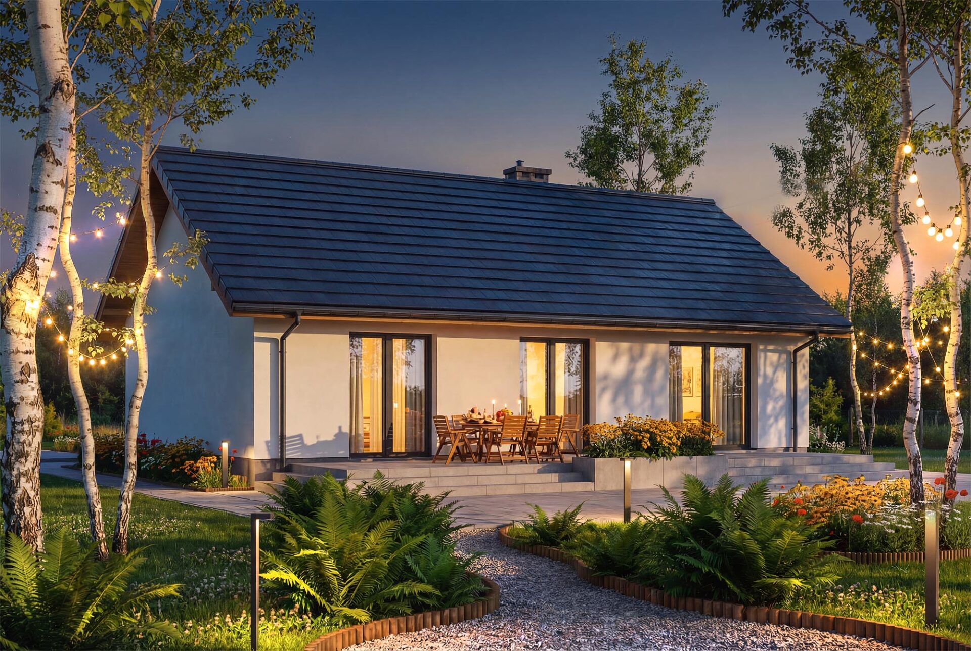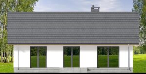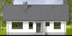 Bambino mini to projekt komfortowego i przytulnego domu jednorodzinnego z przemyślanym układem funkcjonalnym, utrzymanego w tradycyjnej formie. Jasna, subtelna kolorystyka tynków nadaje bryle lekkości i świeżości, jednocześnie doskonale wpisując się w każde otoczenie. Prosta, czysta linia elewacji sprawia, że budynek prezentuje się elegancko i nowocześnie, a jednocześnie jest niezwykle uniwersalny – łatwy do personalizacji według indywidualnych gustów przyszłych mieszkańców. Sercem domu jest przestronny salon połączony z jadalnią i aneksem kuchennym, który dzięki dużym przeszkleniom naturalnie łączy się z ogrodem, optycznie powiększając przestrzeń wypoczynkową. W projekcie znajdują się trzy ustawne sypialnie oraz funkcjonalna łazienka, co zapewnia pełną intymność każdemu z członków rodziny. Aby można było wykorzystać poddasze, w korytarzu zaprojektowano otwór w stropie na schody spuszczane. Kotłownie funkcjonalnie oddzielono od części mieszkalnej poprzez wiatrołap. Zaprojektowano w niej ogrzewanie na paliwo stałe, oraz instalację gazową co ułatwi na etapie adaptacji zmianę źródła ogrzewania na gazowe. Prosta bryła i nieskomplikowana konstrukcja ułatwiają i przyspieszają budowę, a zastosowane rozwiązania energooszczędne pozwalają obniżyć koszty eksploatacji, bez zwiększania kosztów realizacji. To projekt, który nie tylko świetnie wygląda – ale również doskonale się w nim mieszka.
