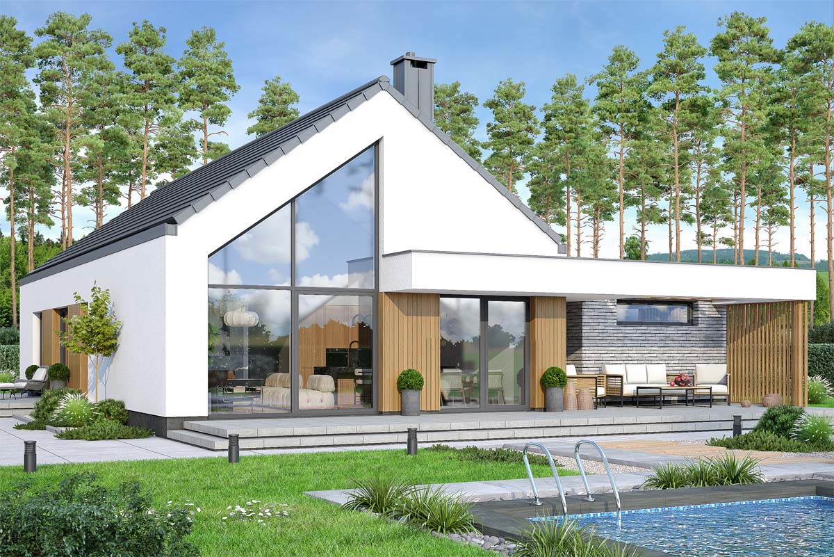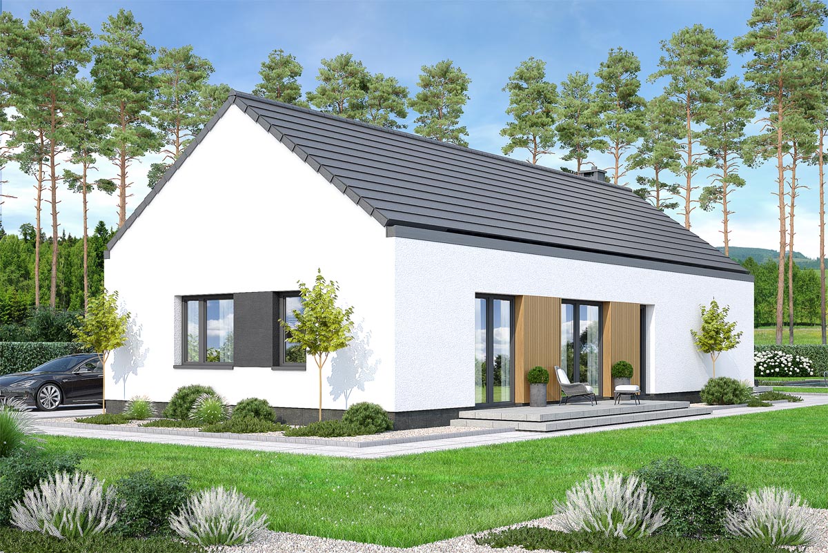 Gustav 2 to świetny przykład nowoczesnego domu. Projekt łączy praktyczność z niepowtarzalnym designem, oferując przestrzeń idealnie dopasowaną do oczekiwań rodziny. To znakomita opcja dla osób ceniących wygodę, estetykę i bliskość przyrody. Połączenie klasycznego modelu domu w nowoczesnej odsłonie oraz minimalistycznej bryły garażu symbolizuje innowacyjność, harmonię i ponadczasowy charakter.