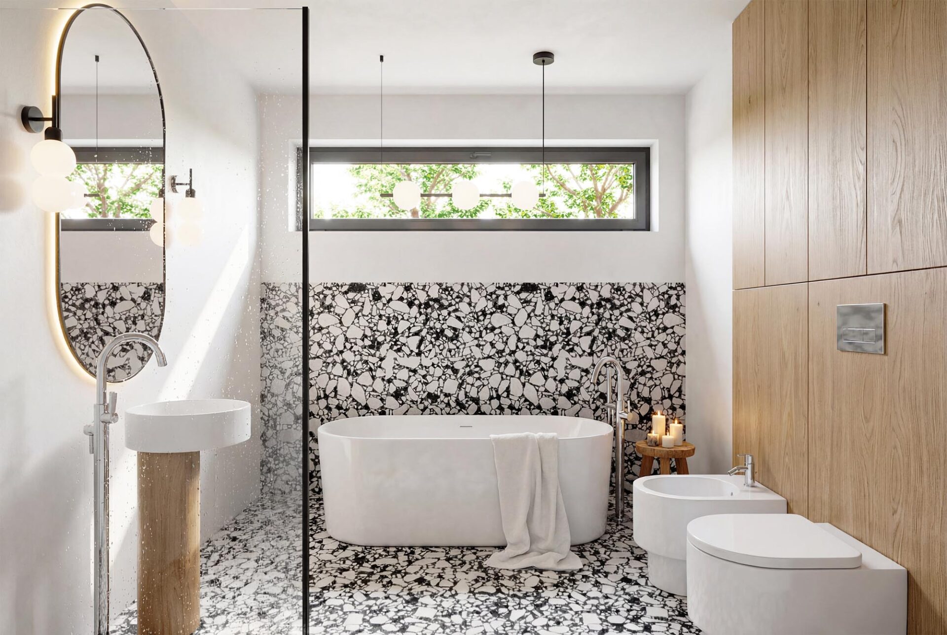 łazienka z miejscem na pralkę w zabudowie