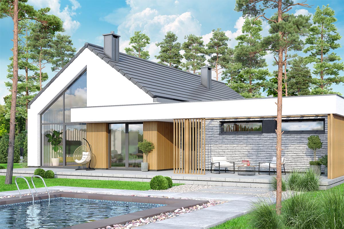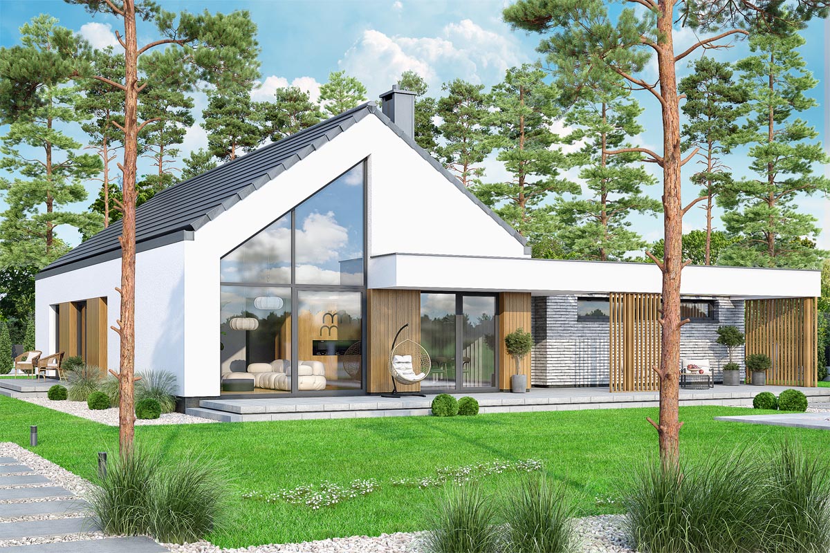 Gustav 3 to świetny przykład nowoczesnego domu. Projekt łączy praktyczność z niepowtarzalnym designem, oferując przestrzeń idealnie dopasowaną do oczekiwań rodziny. To znakomita opcja dla osób ceniących wygodę, estetykę i bliskość przyrody. Połączenie klasycznego modelu domu w nowoczesnej odsłonie oraz minimalistycznej bryły garażu symbolizuje innowacyjność, harmonię i ponadczasowy charakter.