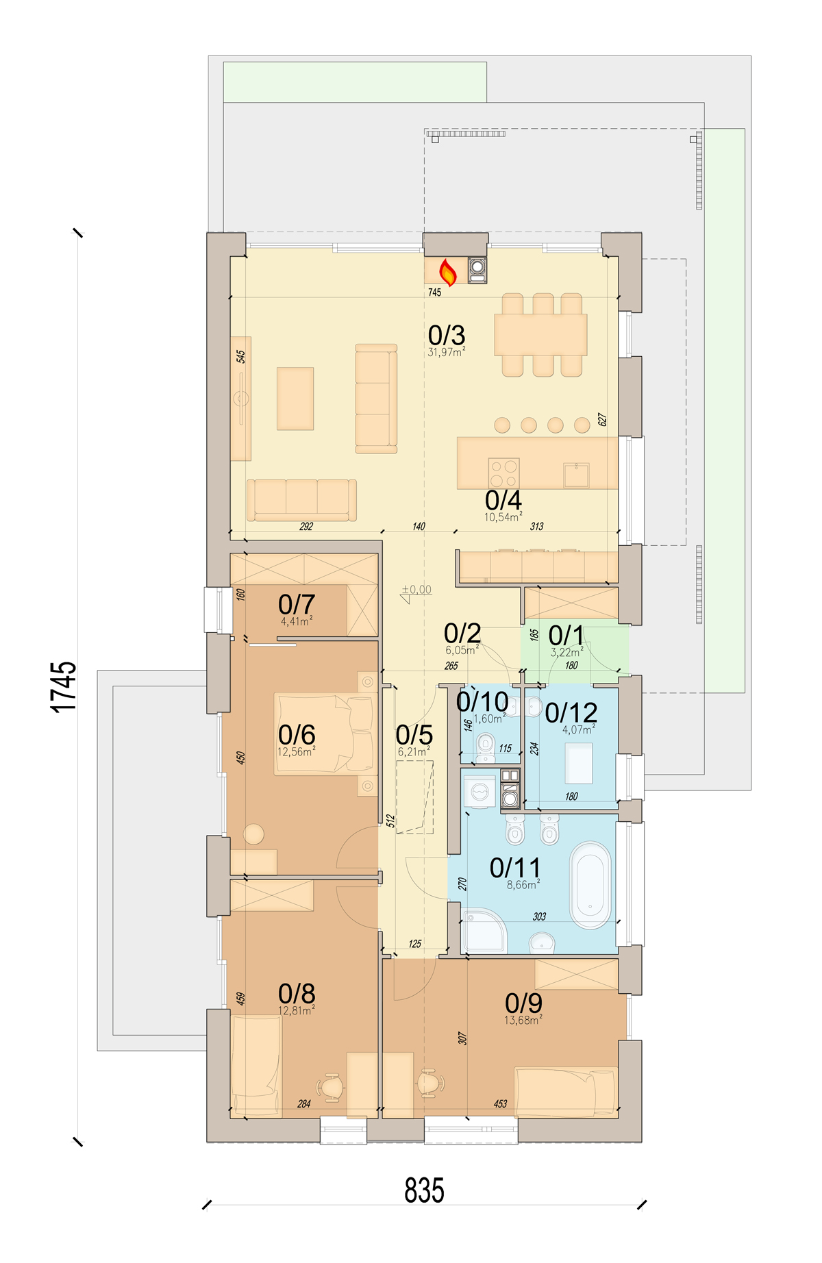 Projekt można znaleźć w kategorii: projekty domów parterowych, projekty domów z wnętrzami, projekty domów nowoczesnych,