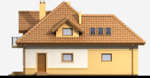Dodatkowym atutem domu jest zlokalizowane na parterze duże pomieszczenie gospodarcze z wyjściem na ogród, spiżarnia dostępna z kuchni oraz w pełni ustawna łazienka. Na poddaszu zlokalizowano trzy sypialnie, pokój rekreacyjny, dużą łazienkę z lukarną oraz garderobę. Wszystkie trzy sypialnie mają wyjścia na balkony.