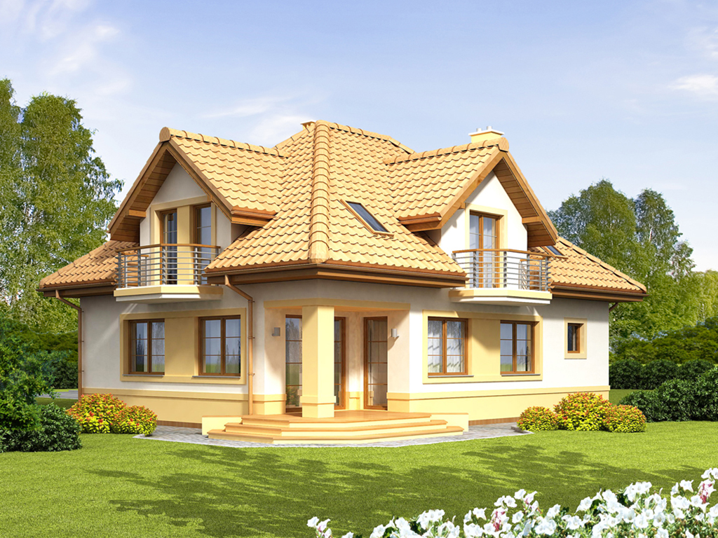 Karmel to klasyczny i elegancki dom jednorodzinny z poddaszem użytkowym i garażem, przeznaczony dla 4-5 osobowej rodziny. W projekcie domu położono szczególny nacisk na to, aby układ funkcjonalno-przestrzenny pomieszczeń stwarzał dużą wygodę w użytkowaniu i dawał możliwość ciekawej aranżacji wnętrz. Na parterze zaprojektowano wiatrołap, prowadzący do holu, który otwiera się na salon połączony z jadalnią oraz kuchnię. W strefie komunikacji przewidziano miejsce na dużą szafę w zabudowie.