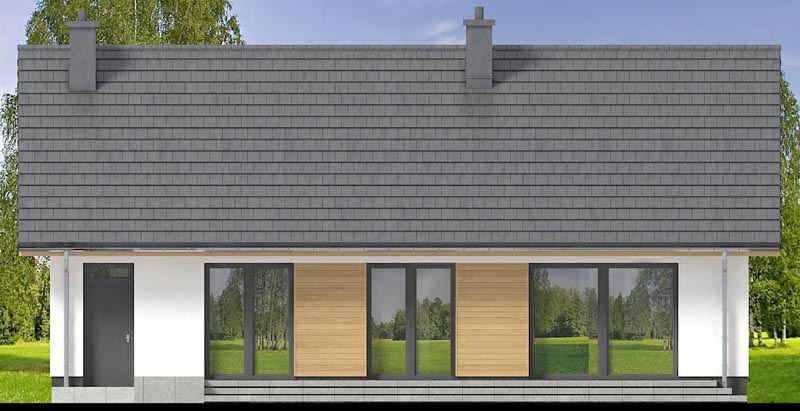 Limonka 2 plus to projekt małego domku parterowego. Dzięki bardzo prostej formie jest tani i łatwy w budowie. Mimo niewielkich rozmiarów, dom posiada duży salon z miejscem na jadalnię , ustawną kuchnię z efektowną wyspą, oraz trzy komfortowe pokoje. W wiatrołapie przewidziano miejsce na szafę i siedzisko. Spora łazienka daje możliwość wydzielenia miejsca na prysznic i wannę.