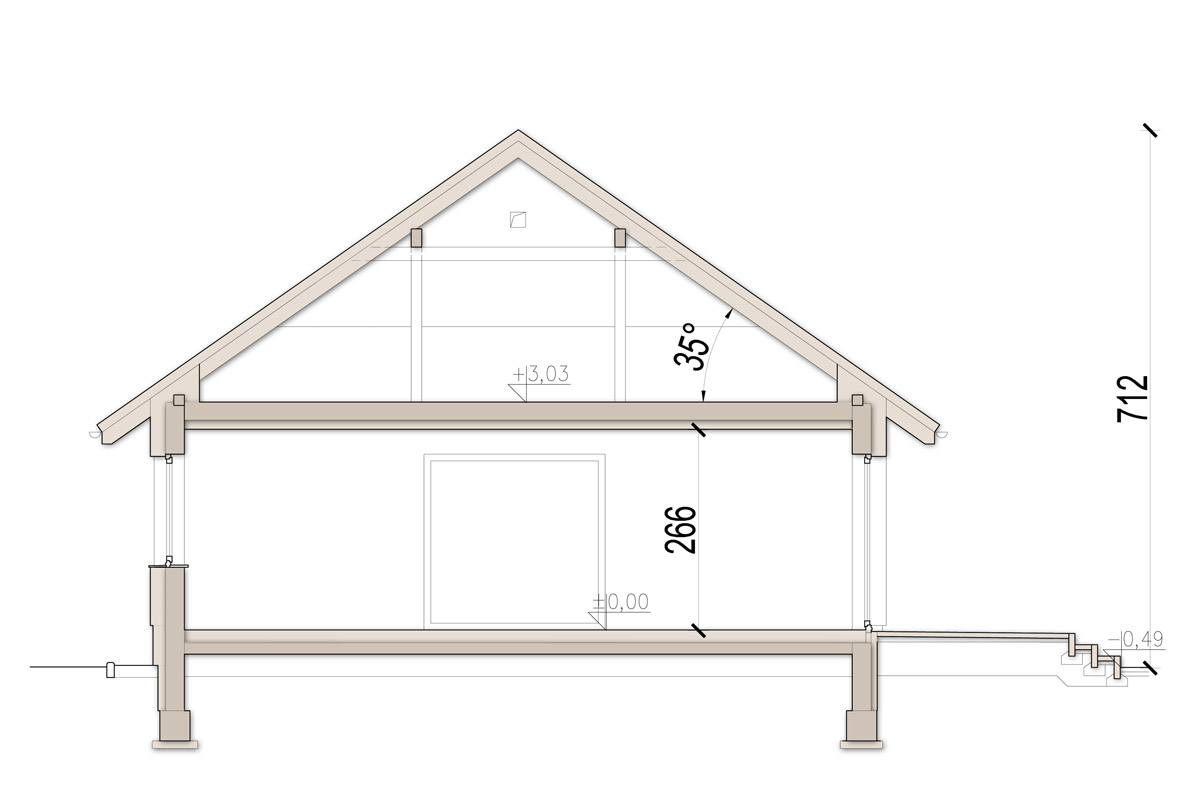 Aby wykorzystać przestrzeń poddasza zaprojektowano klasyczną więźbę.
