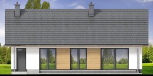 Limonka 2 to projekt małego domku parterowego. Dzięki bardzo prostej formie jest tani i łatwy w budowie. Mimo niewielkich rozmiarów, dom posiada duży salon z miejscem na jadalnię , ustawną kuchnię z efektowną wyspą, oraz trzy komfortowe pokoje. W wiatrołapie przewidziano miejsce na szafę i siedzisko. Spora łazienka daje możliwość wydzielenia miejsca na prysznic i wannę.