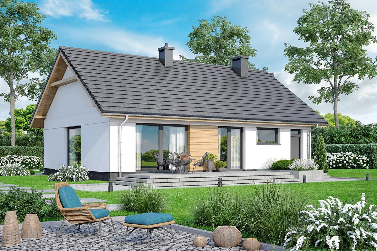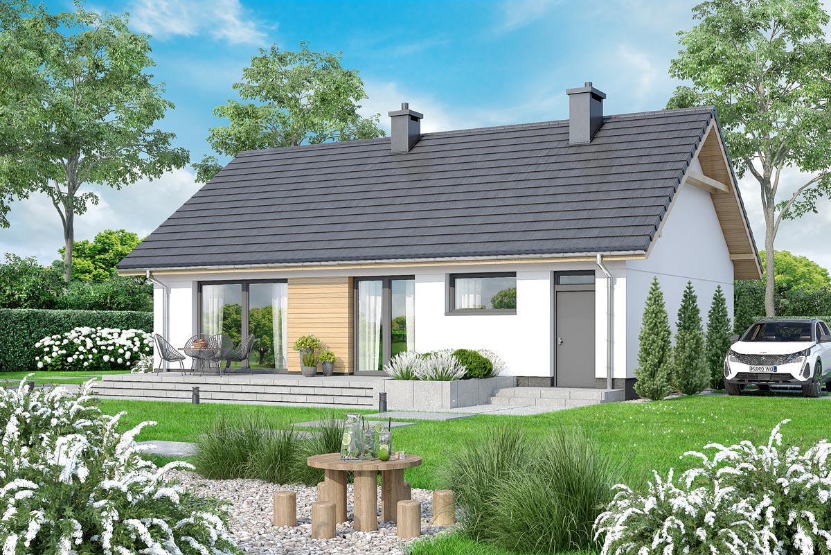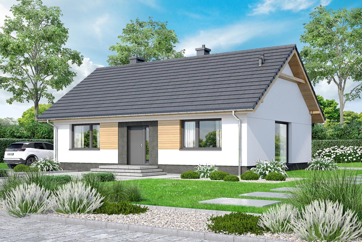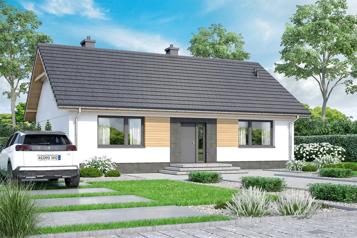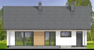 Limonka to projekt małego domku parterowego. Dzięki bardzo prostej formie jest tani i łatwy w budowie. Mimo niewielkich rozmiarów, dom posiada duży salon z miejscem na jadalnię , ustawną kuchnię z efektowną wyspą, oraz dwa komfortowe pokoje. W wiatrołapie przewidziano miejsce na szafę i siedzisko. Spora łazienka daje możliwość wydzielenia miejsca na prysznic i wannę.