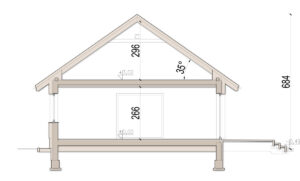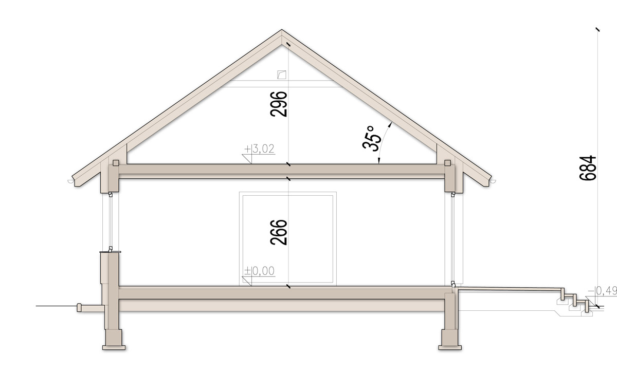 Aby wykorzystać przestrzeń poddasza zaprojektowano klasyczną więźbę.