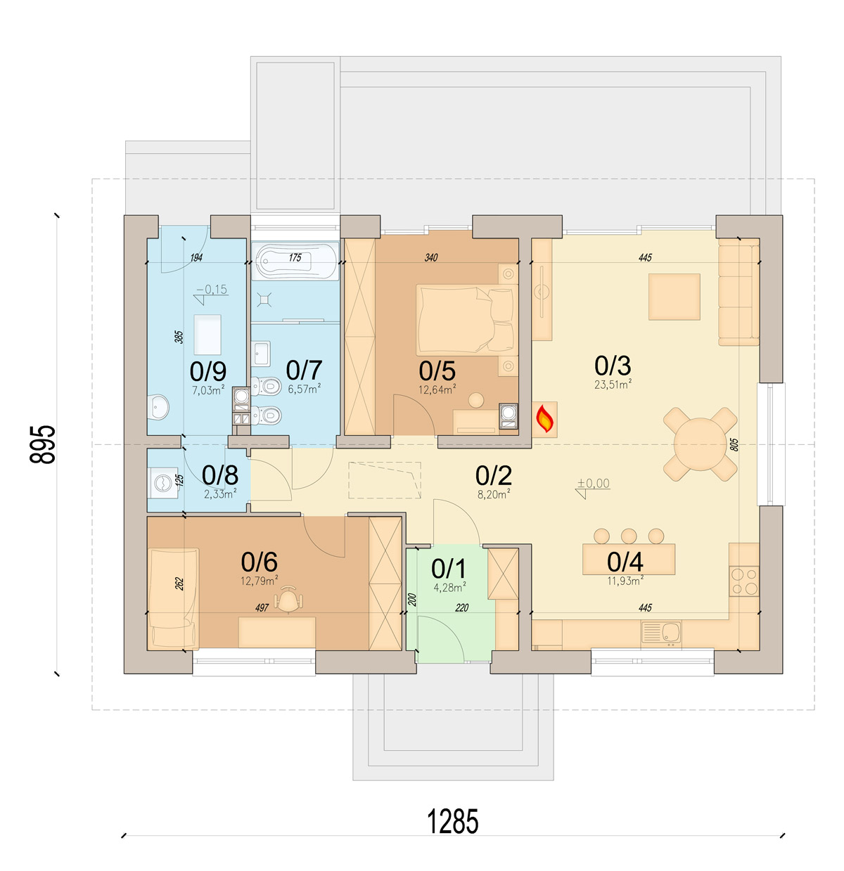 Projekt można znaleźć w kategorii: projekty domów parterowych, projekty domów z wnętrzami,