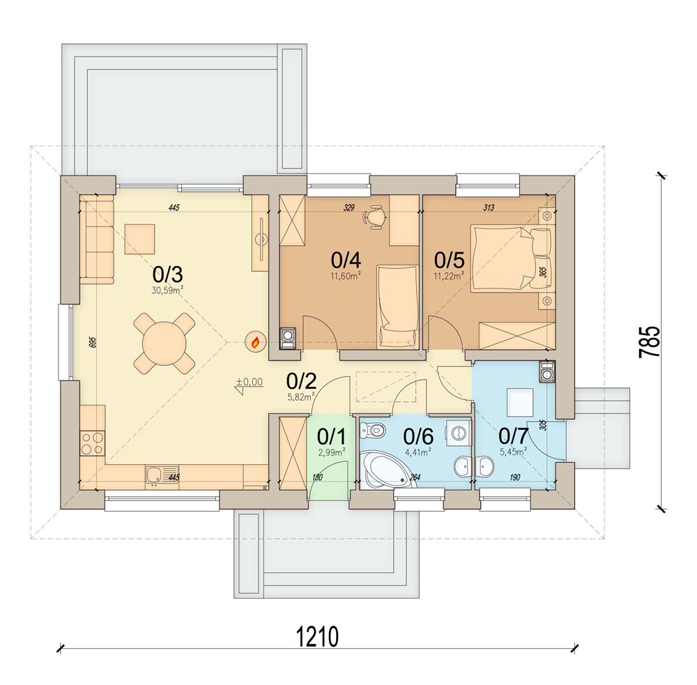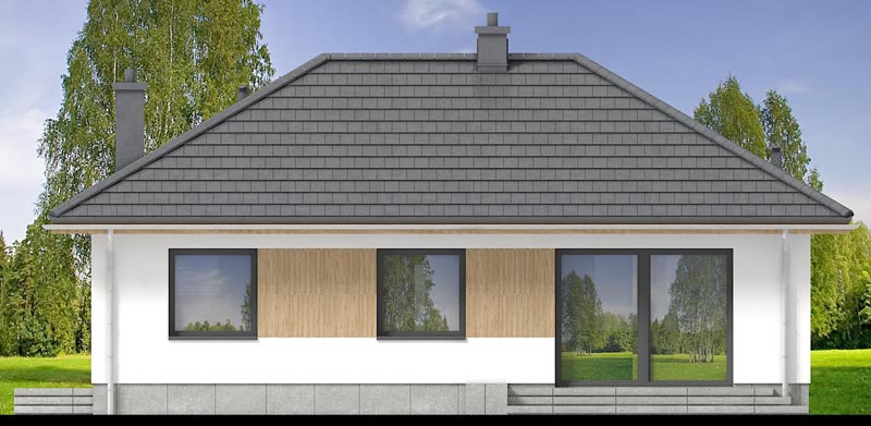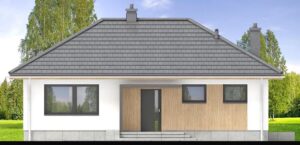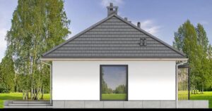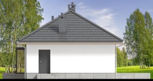 Mirabelka 3 4s to projekt małego domku parterowego. Dzięki bardzo prostej formie jest tani i łatwy w budowie. Mimo niewielkich rozmiarów, dom posiada duży salon z miejscem na jadalnię , ustawną kuchnię, oraz dwa komfortowe pokoje. W wiatrołapie przewidziano miejsce na dużą szafę.
