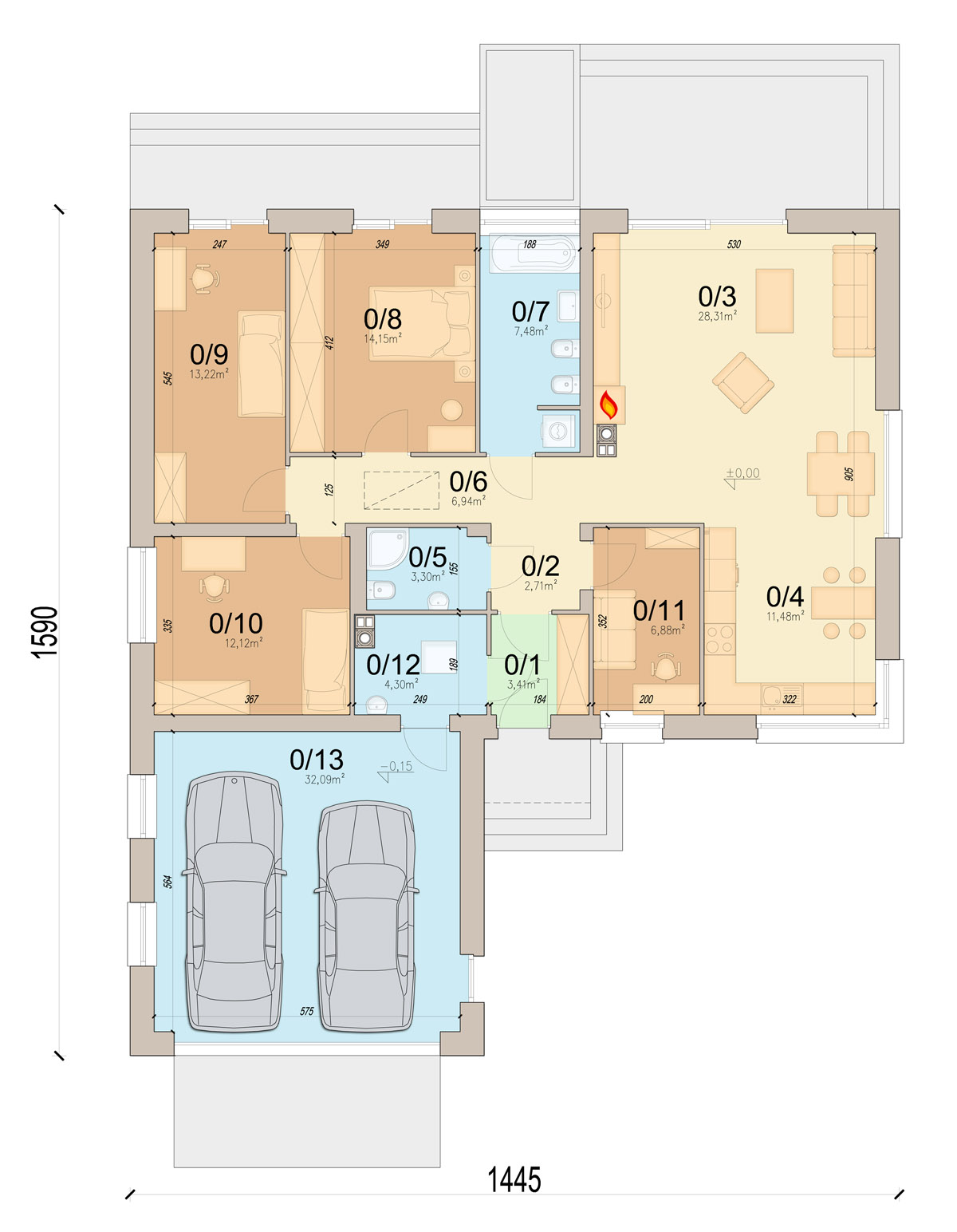 Projekt można znaleźć w kategorii: projekty domów parterowych, projekty domów z wnętrzami,