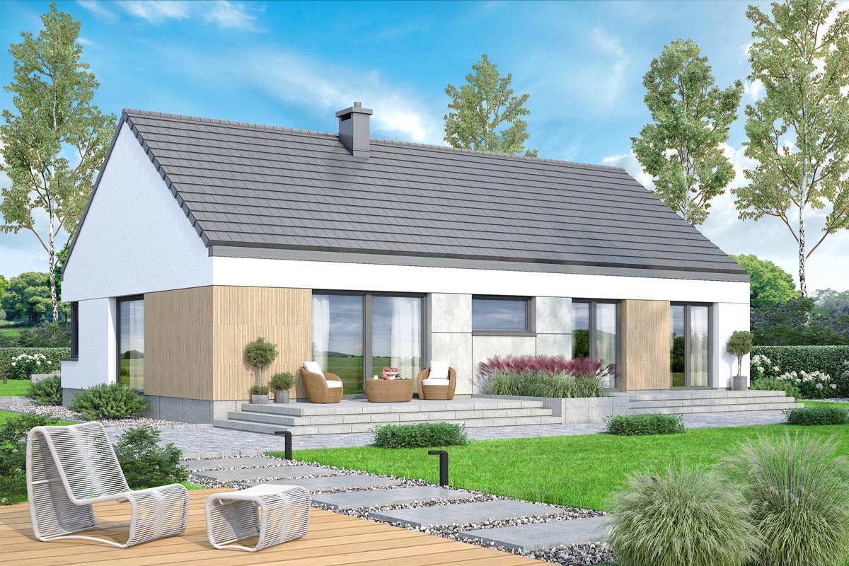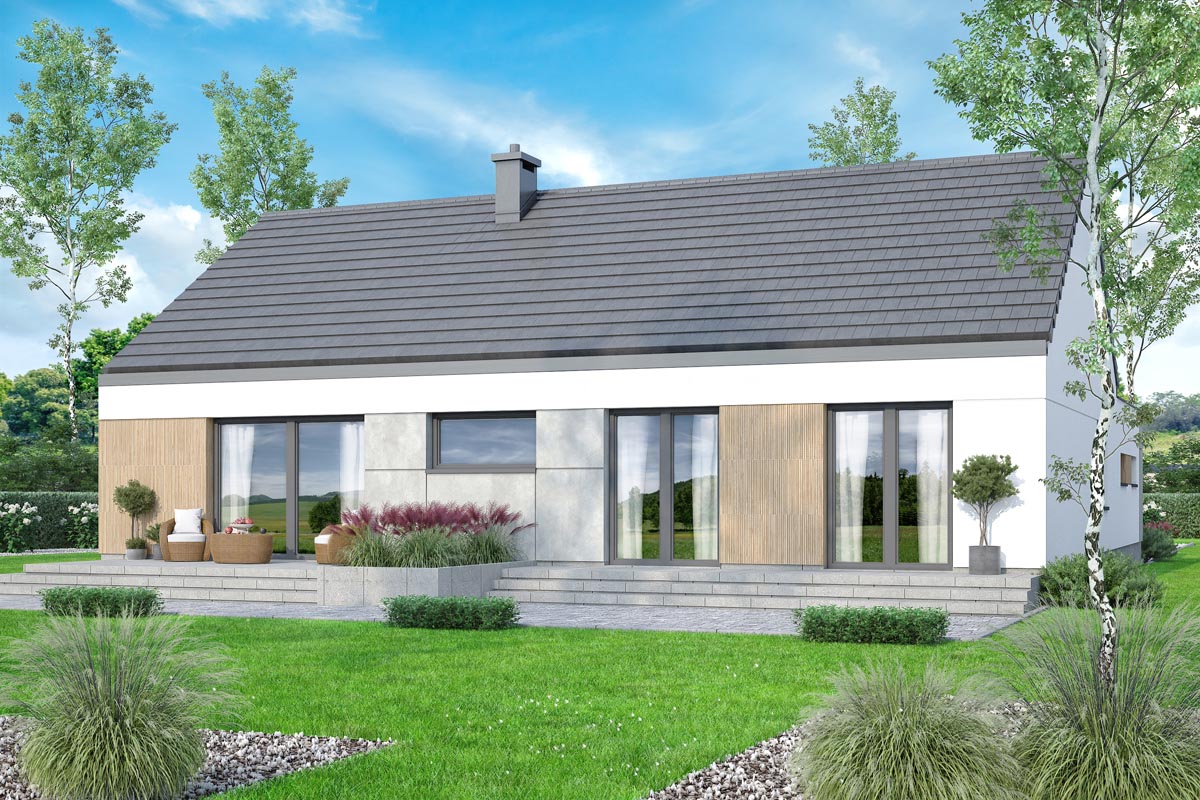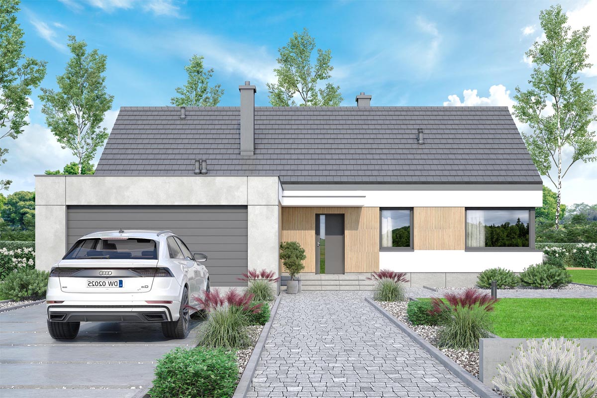 Mokka 18 modern plus to nowoczesny, parterowy dom jednorodzinny, który wyróżnia się elegancką formą i oryginalną stylistyką. Ciekawie zaprojektowana elewacja nadaje budynkowi niepowtarzalny charakter, a prosta bryła sprawia, że jest on łatwy w budowie i dostępny cenowo.