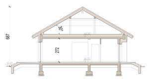 Fundamenty żelbetowe, ściany nośne i działowe z pustaków ceramicznych, strop żelbetowy, konstrukcja dachu drewniana, pokrycie dachu: blacha, dachówka ceramiczna lub betonowa
