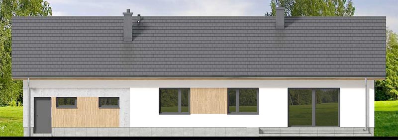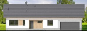 Kotłownia oddzielona jest garażem dwustanowiskowym, co jest szczególnie pożądane przez użytkowników kotła na paliwo stałe. Dodatkowo zaprojektowano instalację gazową co na etapie adaptacji ułatwi zmianę źródła ogrzewania. Prosta bryła i nieskomplikowana konstrukcja, zdecydowanie ułatwią i przyspieszą realizację.
