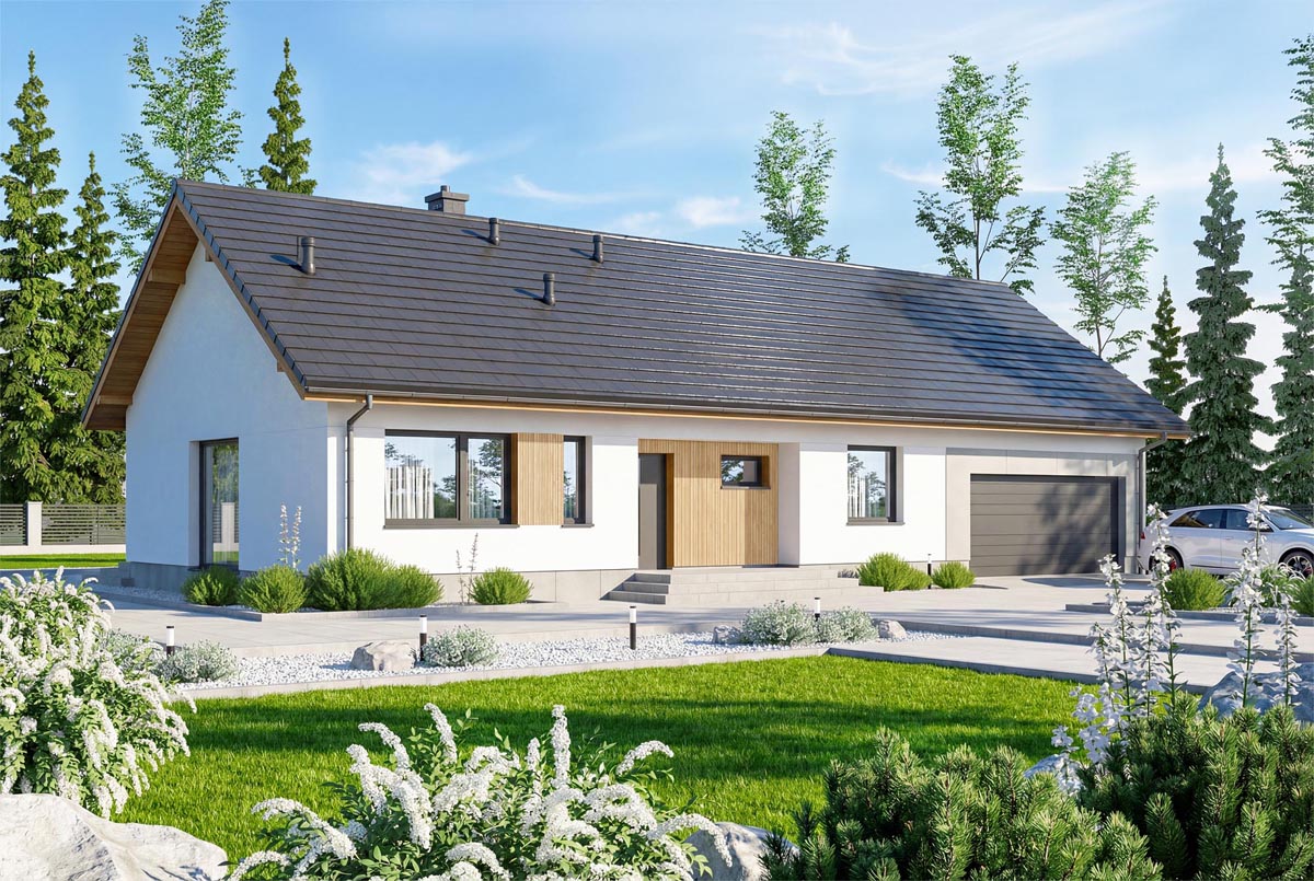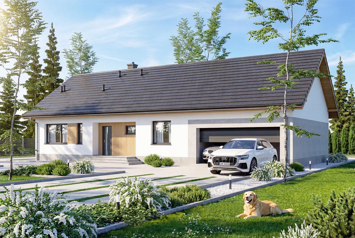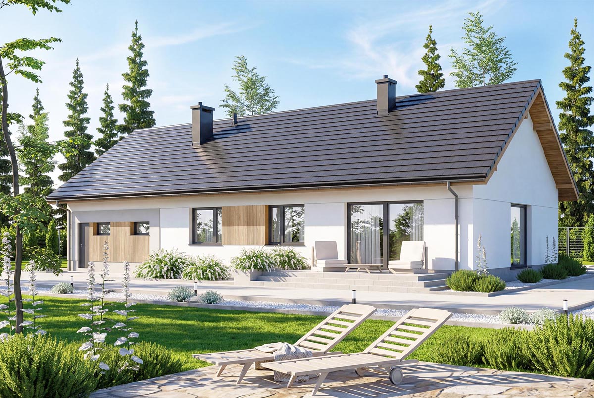 Mokka 20 plus s2 to mały uroczy dom parterowy, który świetnie wpisuje się w każde otoczenie, a zarazem posiada swój oryginalny styl. Dzięki bardzo prostej formie jest tani i łatwy w budowie. Mimo niewielkiego rozmiaru oferuje bardzo rozbudowaną funkcję i wygodę użytkowania. W projekcie przewidziano otwarty salon z jadalnią, oraz dużą kuchnię ze spiżarnią. Dom posiada wiatrołap z miejscem na szafę, oraz dodatkową toaletę. Na uwagę zasługuje również duża łazienka z wydzielonym miejscem na pralkę w zabudowie. Kotłownia oddzielona jest garażem dwustanowiskowym, co jest szczególnie pożądane przez użytkowników kotła na paliwo stałe. Dodatkowo zaprojektowano instalację gazową co na etapie adaptacji ułatwi zmianę źródła ogrzewania. Zastosowane w projekcie rozwiązania energooszczędne – na poziomie ekonomicznie uzasadnionym, zapewnią niskie koszty eksploatacji i nie zwiększą kosztów budowy.