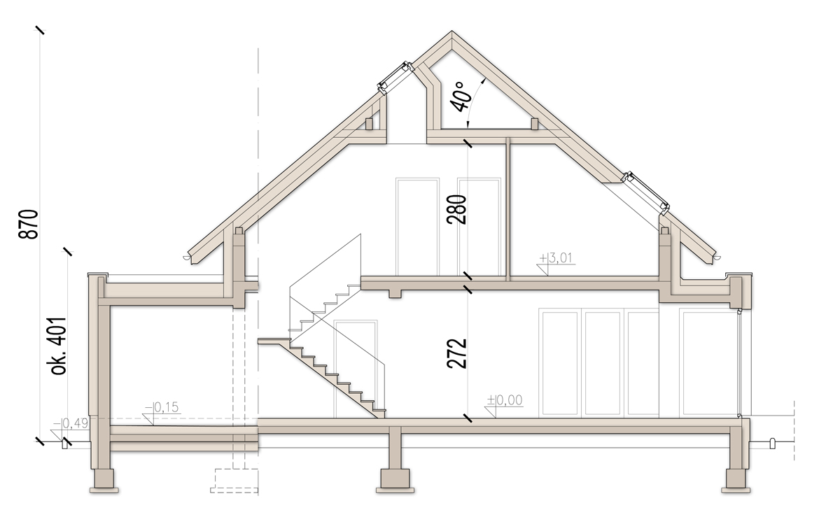 Projekt można znaleźć w kategorii: projekty domów z poddaszem, projekty domów  z wnętrzami,