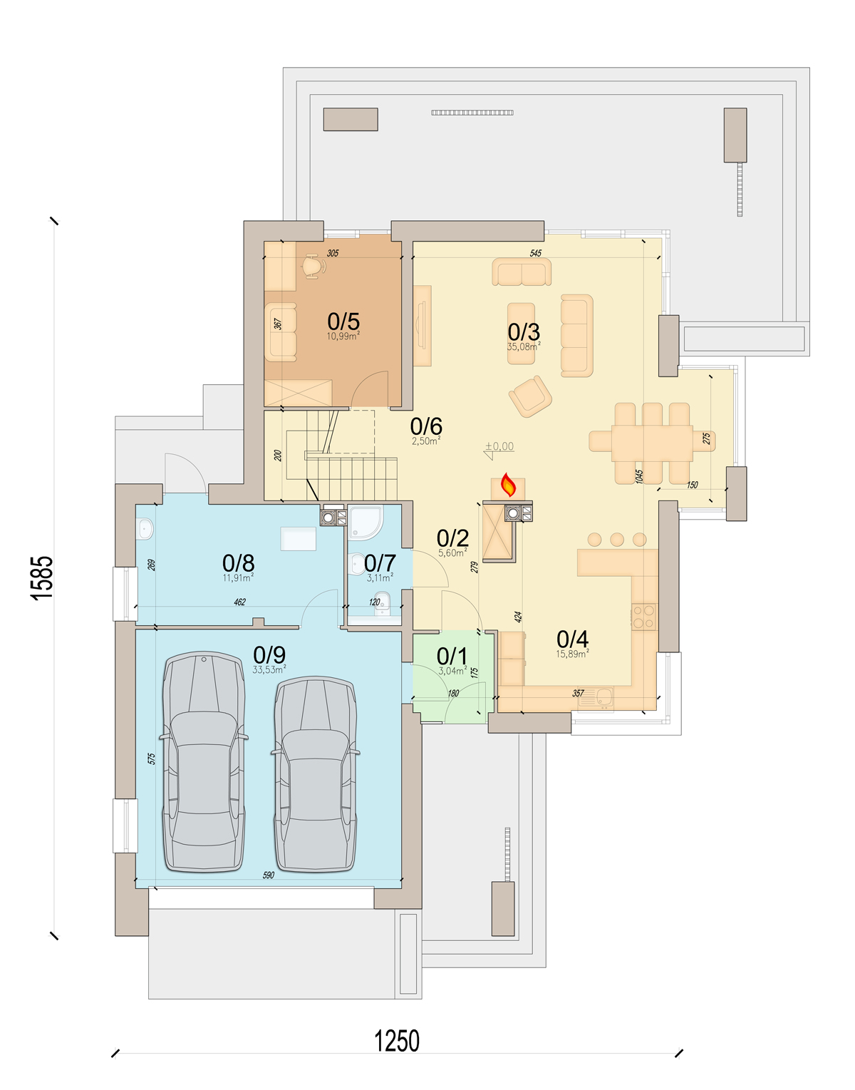 Parter to otwarta strefa dzienna z jasnym salonem, jadalnią i kuchnią, tworząca serce domu – idealne do wspólnego spędzania czasu. Znajduje się tu także dodatkowy pokój – doskonały na gabinet lub pokój gościnny, łazienka oraz praktyczna kotłownia. Dużym atutem jest dwustanowiskowy garaż z bezpośrednim wejściem do wnętrza.