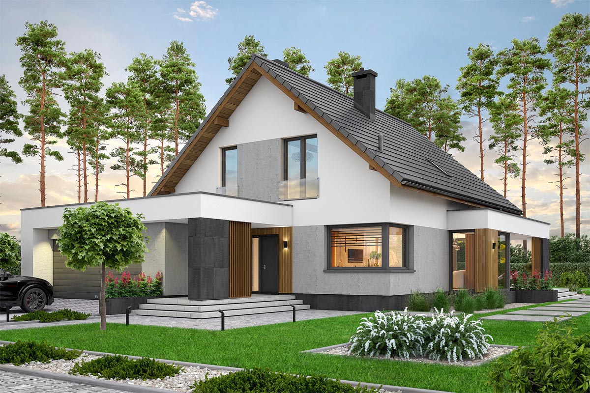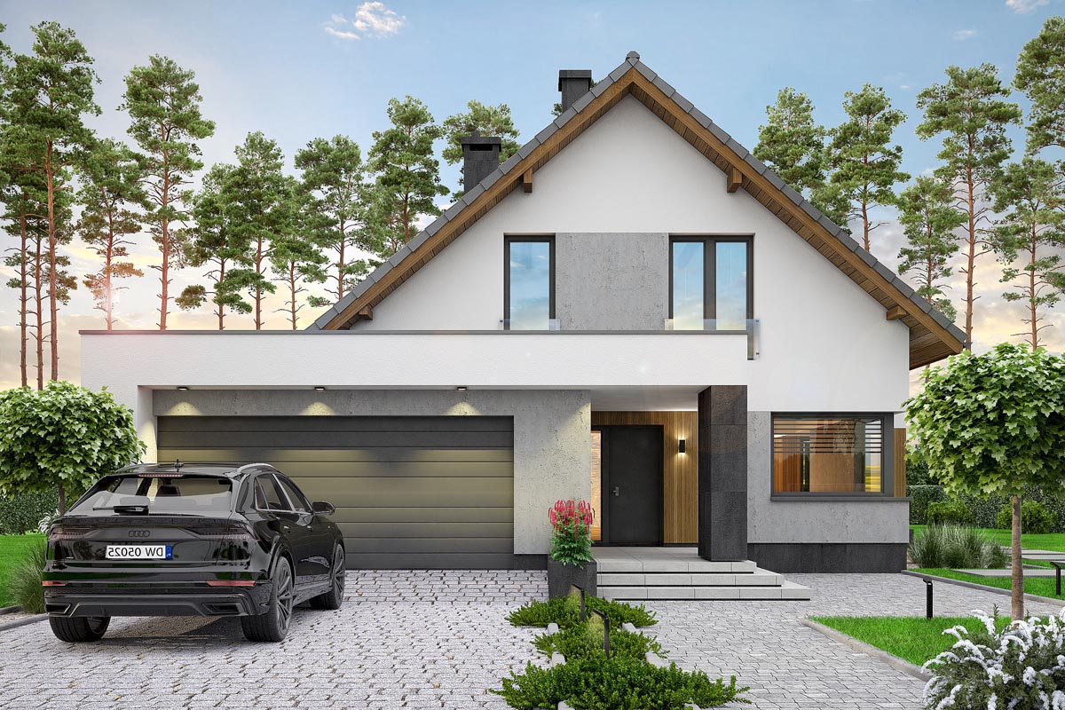 Perfetto 2 to propozycja dla tych, którzy szukają nowoczesnego, wygodnego domu z przestronnym wnętrzem i przemyślanym układem. Doskonałe połączenie prostoty, nowoczesności i domowego ciepła. Bryła budynku jest klasyczna, ale wzbogacona o nowoczesne detale: duże przeszklenia, eleganckie wykończenia elewacji i modne połączenia materiałów.