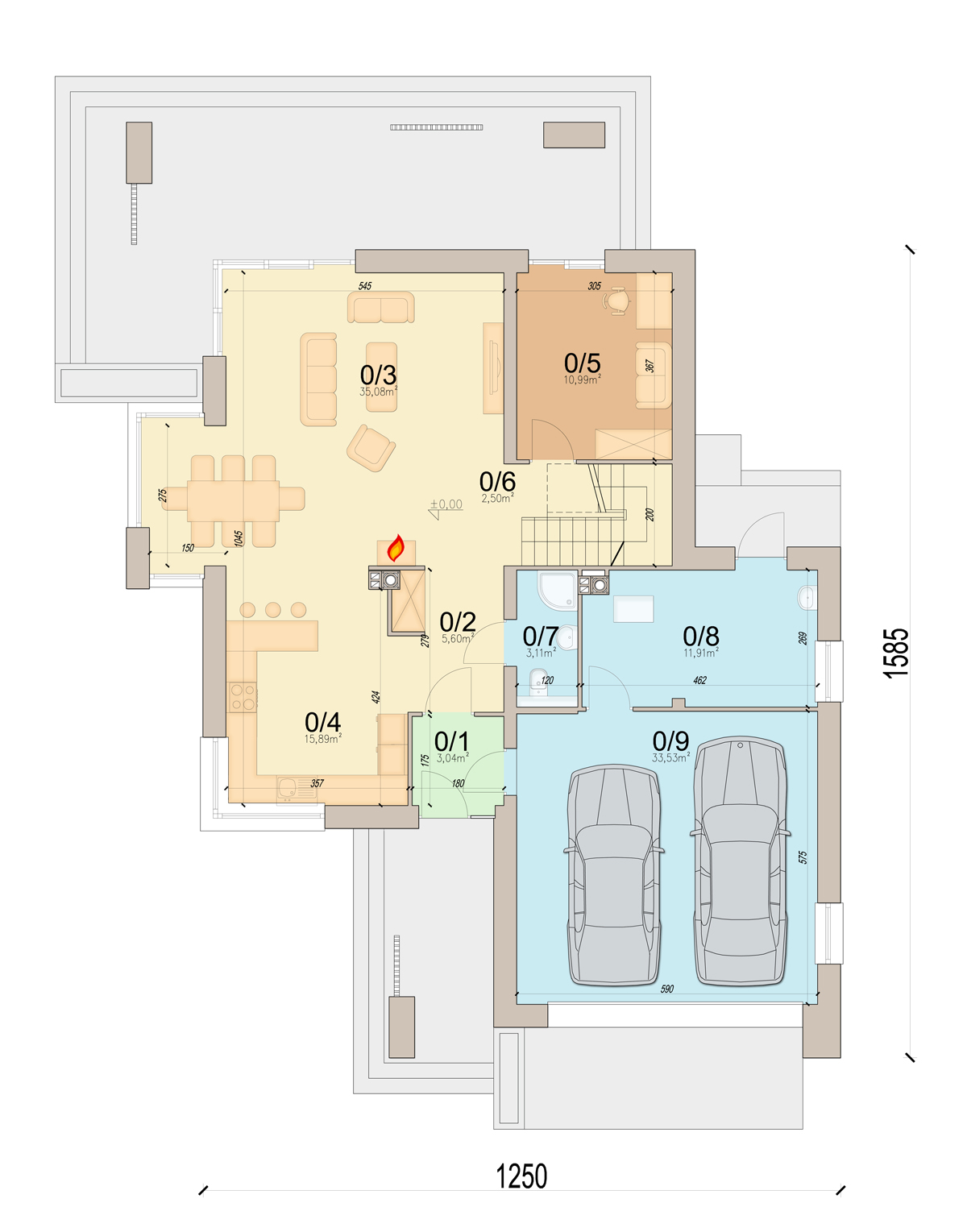 Kotłownie zaprojektowano na paliwo stałe i oddzielono ją od części mieszkalnej garażem.