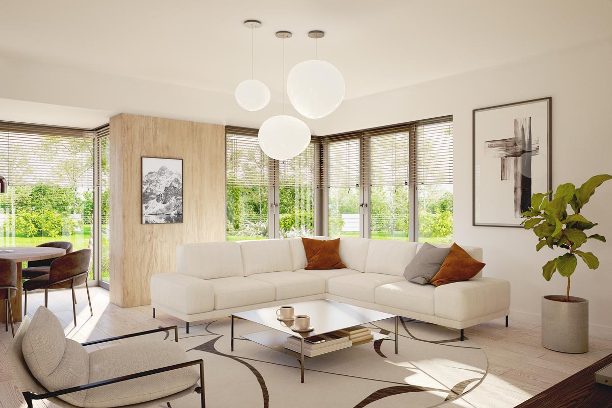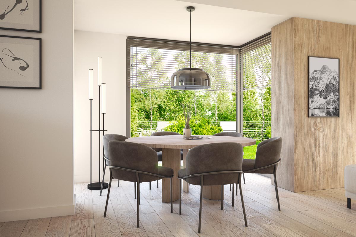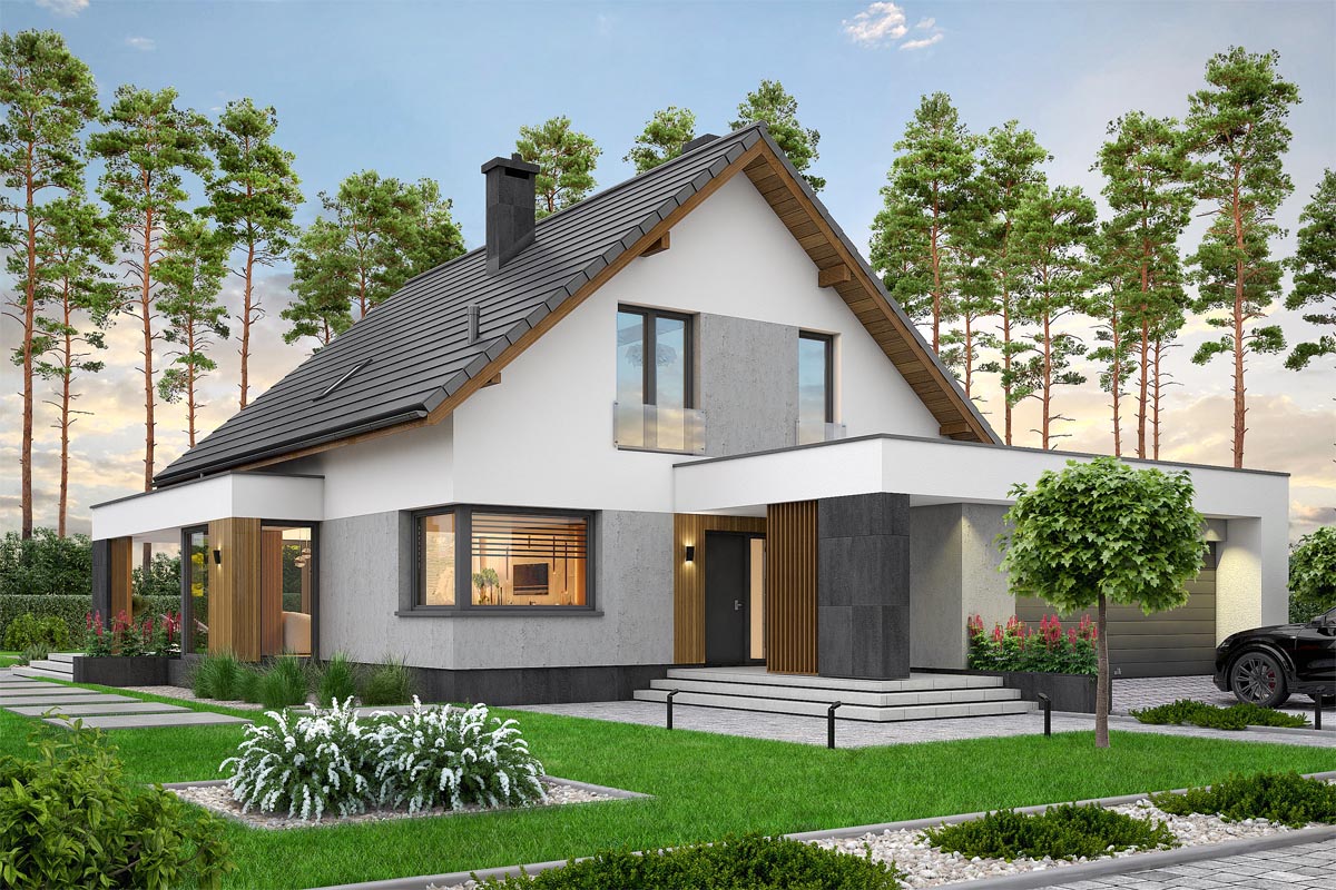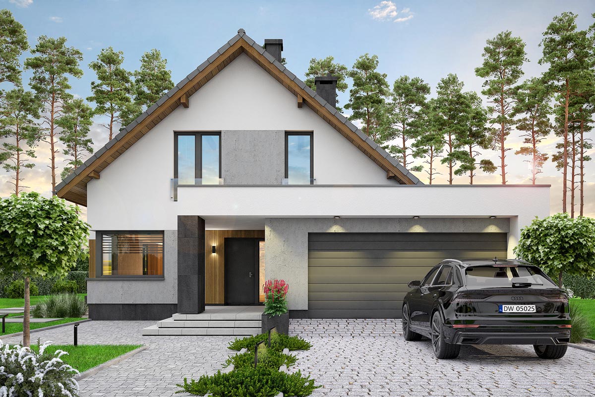 Perfetto 2 to propozycja dla tych, którzy szukają nowoczesnego, wygodnego domu z przestronnym wnętrzem i przemyślanym układem. Doskonałe połączenie prostoty, nowoczesności i domowego ciepła. Bryła budynku jest klasyczna, ale wzbogacona o nowoczesne detale: duże przeszklenia, eleganckie wykończenia elewacji i modne połączenia materiałów.