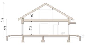 Fundamenty żelbetowe, ściany nośne i działowe z pustaków ceramicznych, strop żelbetowy, konstrukcja dachu drewniana, pokrycie dachu: blacha, dachówka ceramiczna lub betonowa